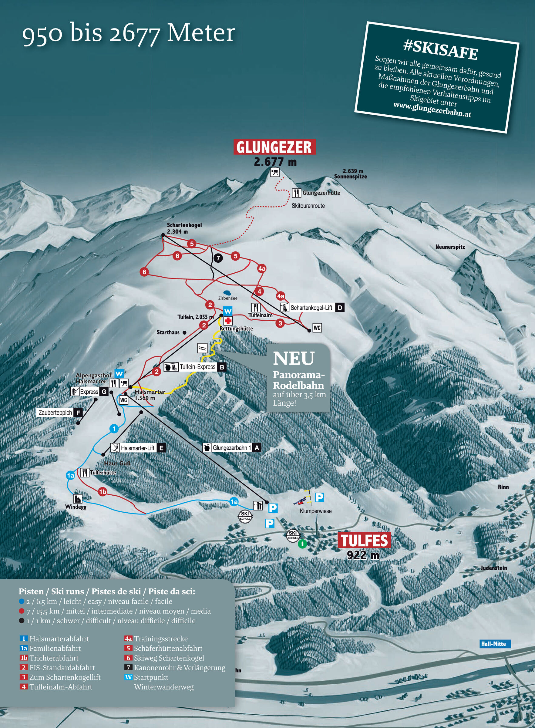 Der „Tulfein Express“ bringt Rodler von der Mittelstation Halsmarter bis hinauf auf 2000 Meter Seehöhe. Ein schneesicheres Vergnügen! Hinunter geht es auf über 3 Kilometern Länge und zehn Kehren zurück hinunter bis zur Mittelstation. Immer im Blick: Die fabelhafte Panoramasicht, die auch das gesamte Skigebiet am Glungezer einzigartig macht. Neben speziellen, attraktiven Tickets für Rodler wird es auch einen Rodelverleih geben.