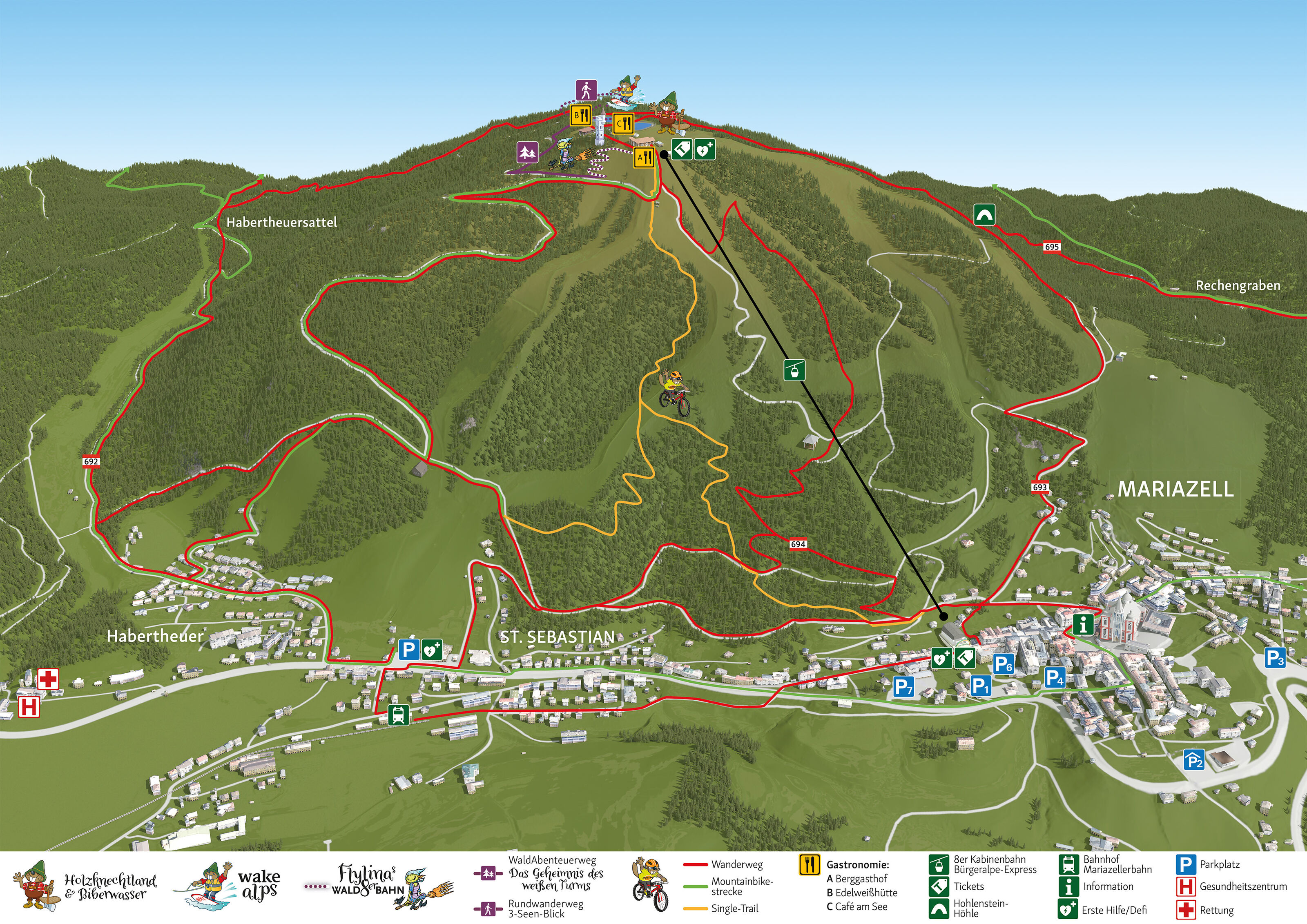 Die neue 8er Kabinenbahn „Bürgeralpe-Express“, zwei 4er-Sessellifte sowie ein Tellerlift und ein Zauberteppich sorgen für den mühelosen Aufstieg. Eine Skischule mit Kinderland rundet das Angebot ab.