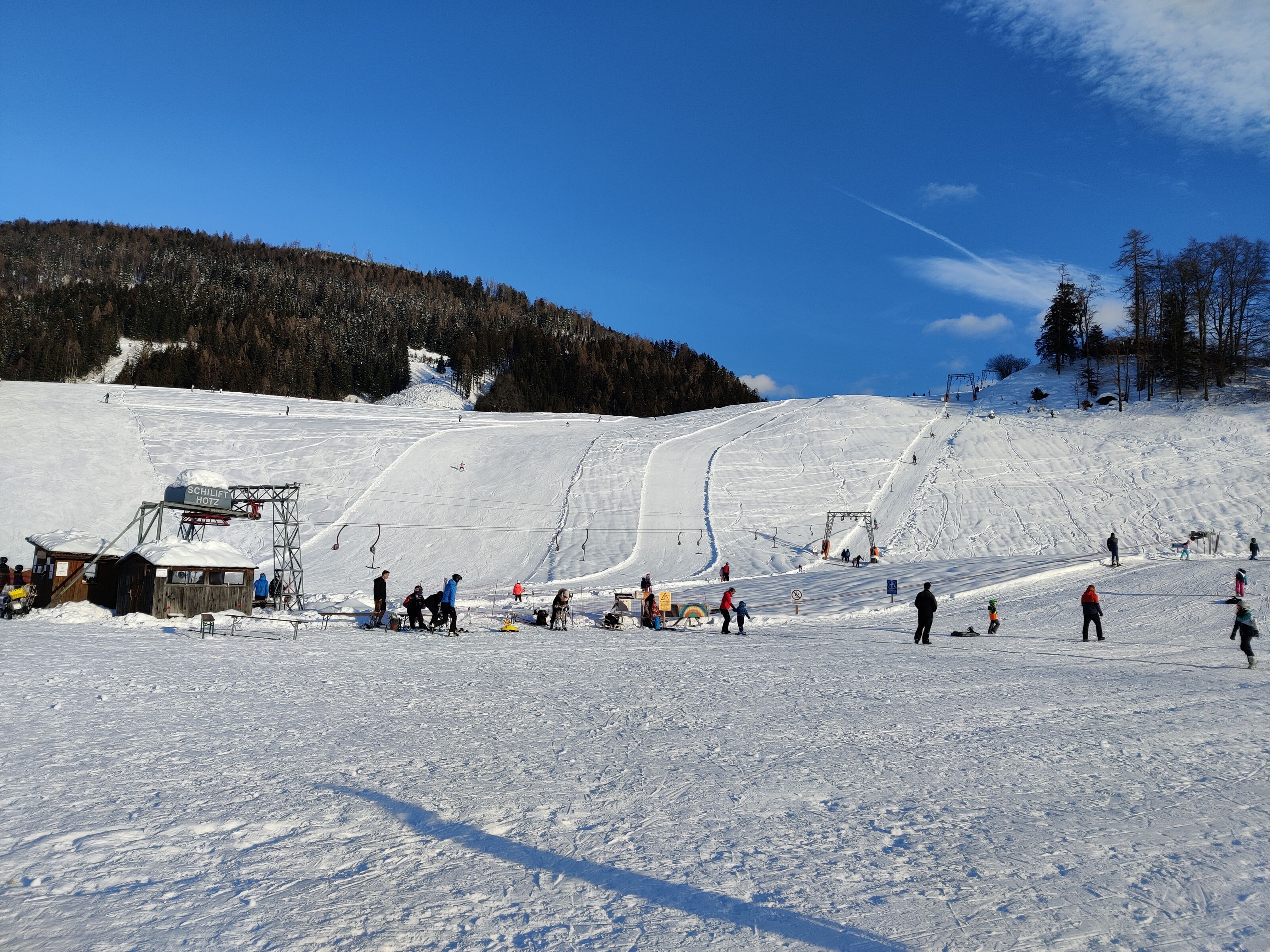 Bei uns gibt's nur Naturschnee, mit viel Sonne und traumhafter Aussicht! Das heißt bei genug Schnee gleich Ski einpacken und ab zum Hotz'n Lift !