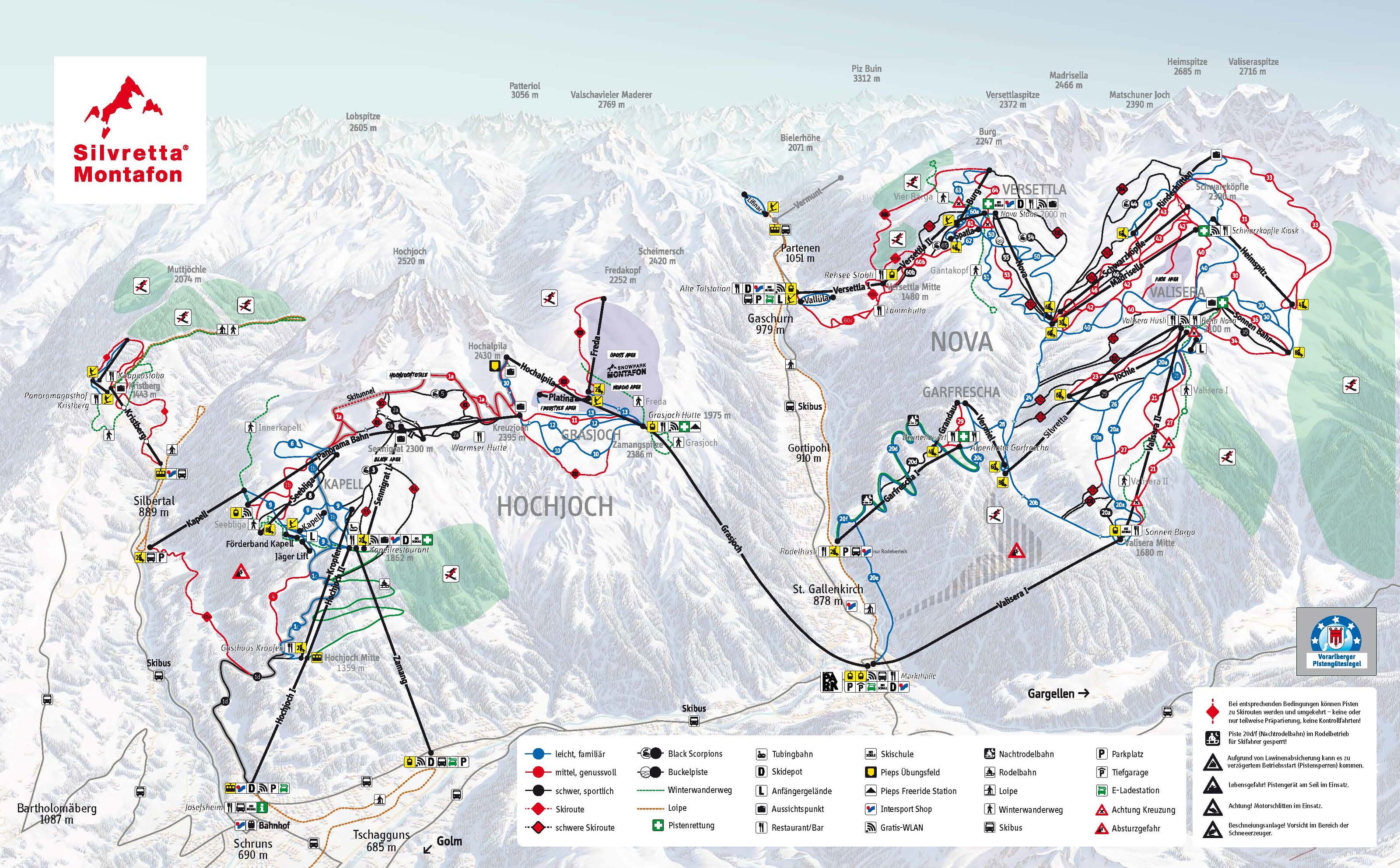Das Alpental Montafon liegt im Süden Vorarlbergs am südwestlichen Ende Österreichs. Es ist von den Gebirgsketten des Rätikons, der Silvretta und dem Verwall umgeben. Zugang zum Skigebiet Silvretta Montafon bieten die Orte Schruns, Tschagguns, St. Gallenkirch-Gortipohl, Gaschurn-Partenen und Silbertal.